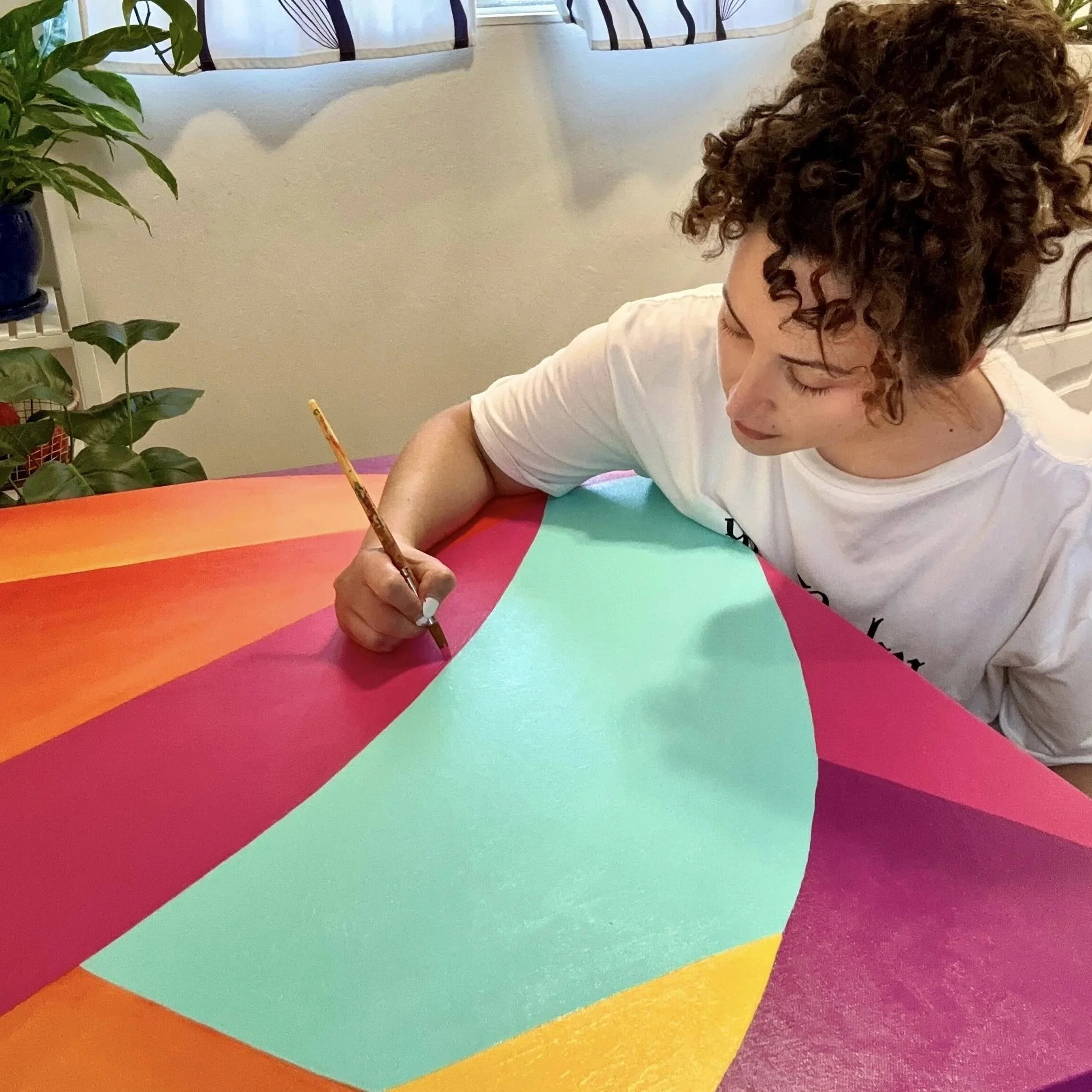 Anavictoria, known as “AnaV,” is a Bay Area muralist and painter deeply connected to her Mexican American and California roots. AnaV creates large-scale art as a form of healing and visibility for the experiences of Latiné families, the working class, and resilient communities. She elevates the beauty of overlooked spaces by mixing Mexican patterns and symbols with all the nuances that unite communities through colorful compositions that inspire collective growth, perseverance, and hope.